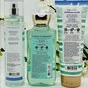 Bath and Body Works Coastal Hydrangeas Fine Fragrance, Gel, Body Cream 3-Pc Set