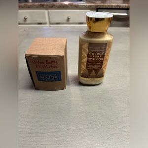 Bath and Body Works Golden Berry Mistletoe Body Lotion and Single Wick Candle