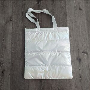 Bath and Body Works Iridescent White Puffer Quilted Tote Shoulder Bag