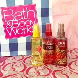 Three barely used 3 fl oz bottles. Love & Sunshine (has deformed cap), A Thousand Wishes, and Wild Madagascar Vanilla. Make an offer! ($10 free shipping on Ⓜ️ercari. Use code RJDJXS to get $2 credit when you sign up!)