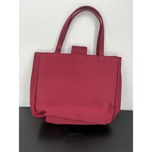 The Bath and Body Works Striped red Handbag Tote Shoulder Bag is a stylish and functional accessory for women on the go. With a snap closure and lined interior, this small shoulder bag is perfect for casual occasions. The exterior color in vibrant red, complemented by a matching red lining, adds a pop of color to any outfit. Made from durable vinyl material, this tote bag is both fashionable and practical for everyday use.
