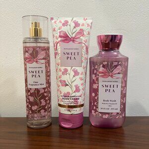 Bath and Body Works Sweet Pea Set Mist, Body Cream, Body Wash NEW