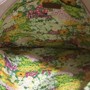 Bath and Body Works VIP Tote. Gold and Beige Canvas. Very pretty floral lining.