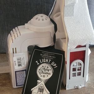 Bath and Body Works Santa's Workshop nightlight plug-in projects Merry Christmas on the wall above for an added decorative touch.