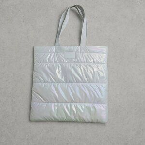 Bath and Body Works White Iridescent Puffer Tote Bag Glossy Winter Travel Y2K