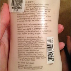 Never used cashmere glow body lotion. Has a very warm vanilla-like smell. I would keep this but i have too many lotions!