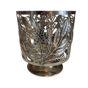 Bath and Body Works candle holder silver tone winter Christmas Holly snowflake