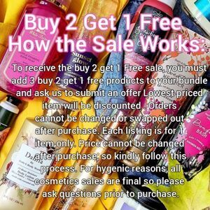 to receive discount you must add to a bundle with 2 other buy 2 get 1 free bath and body works items. there is a maximum of 3 candles per bundle due to weight restrictions. this listing is for 1 hand cream. lowest priced item will be discounted