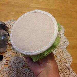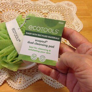 You get a new ecotools bath/shower tool that is an exfoliating scrub surface on one side and shower sponge on the other. Eco-Friendly. Also included, a metal mesh container for adding fresh herbs to your bath. Just add herbs and soak! Includes a little brush that helps with cleaning the herbs off the sides of the container when finished. Please note the lid does not screw in, it has grooves that hook it into place.