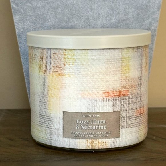 Bath & body work Cozy Linen & Nectarine Large 3-Wick Candle New