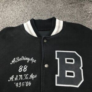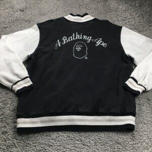 Bathing Ape Mens Varsity Jacket Sz XL Black Snaps Street Wear Nigo Long Sleeve