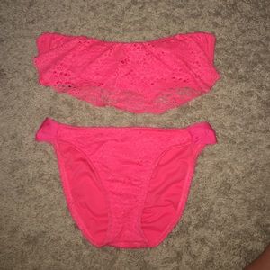 Strapless bathing suit. Both top and bottom and medium in size