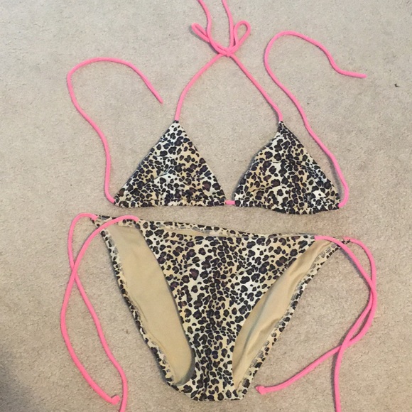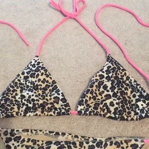 Cheetah Printed Victoria’s Secret 2 Piece Bathing suit with coral pink ties