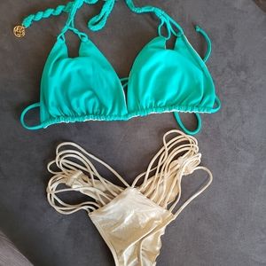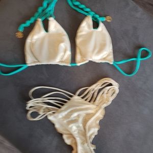 2 piece. Top is reversible. Gold lame. Top is LG. Bottom is SM. Like new.