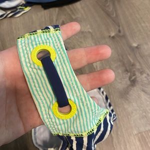 Good condition. Navy blue and green. Small but might fit an XS.