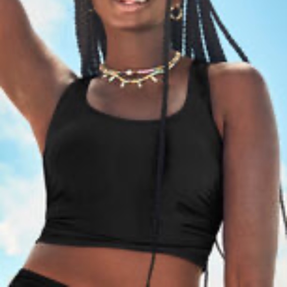 NWT, never worn, Cropped Racerback black tank-strapped swim top, size 22/3x by Swimsuits For All