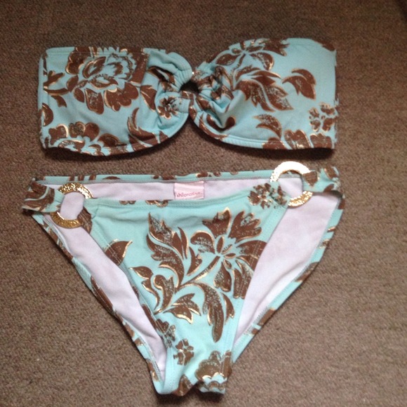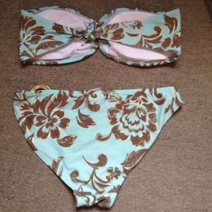 Blue background with brown and gold floral designs and gold rings on the bottom, good condition