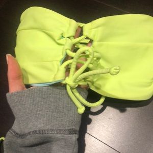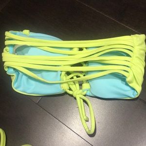 Bright baiting suit, lace up front with strappy back. Never worn! Purchased from target. Yellowy green/blue