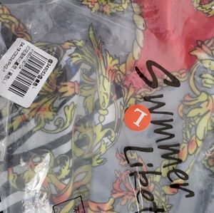 I adore this one piece suit! Adjustable straps. I ordered it from China, it cost too much to return. It's never been worn. Seems to run small. This is a large.beautiful colors red, gray, gold, black