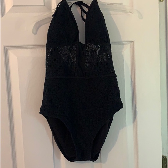 Black see through mid section bathing suit. Worn a few times. Still in great shape. Runs small in boobies though :)