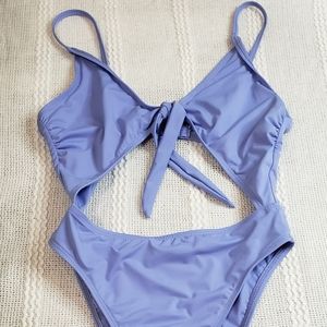Summer never looked better in this tie front one-piece. The adjustable tie and middle cutouts make it the perfect combination of sexy and sweet.