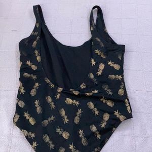Gold and black pineapple one piece swim suit.