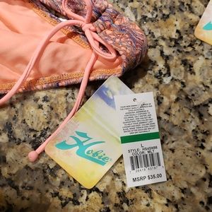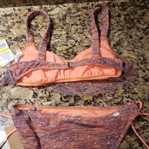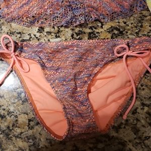 Never worn Multicolored 2 piece bathing suit. Medium top. Large bottoms.