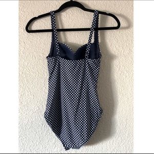 One-piece bathing suit. Navy with white polka dots. Bust support. Super cute and flattering fit. Worn once.
