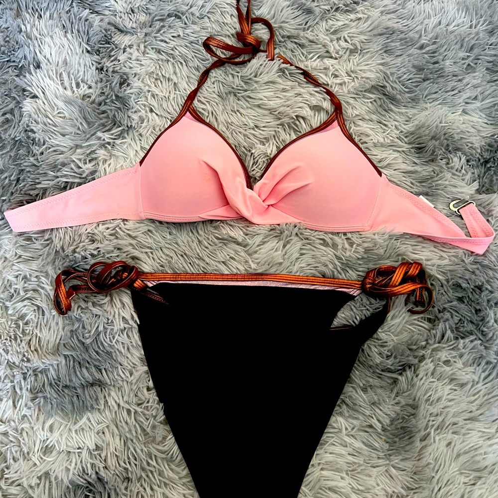 Small top and bottom bikini pink and brown super cute!