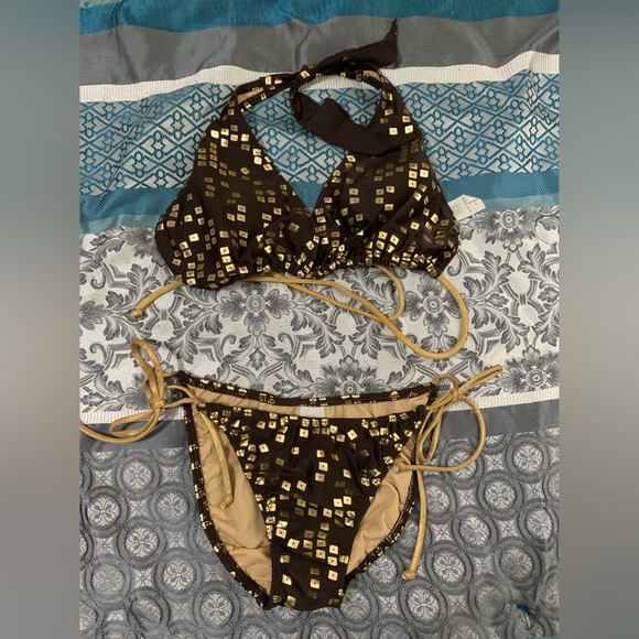 Gold and brown bikini 2 piece , perfect condition never been worn Top - D Bottoms - small