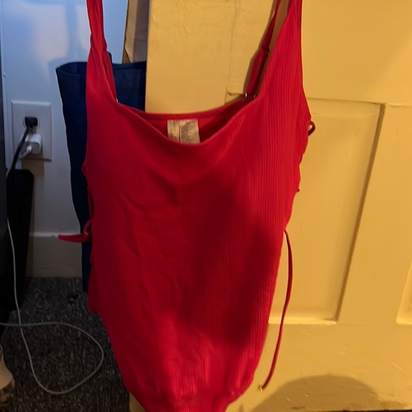 One piece, push up bathing suit. fun, safe but sexy too. cute braided design up each side