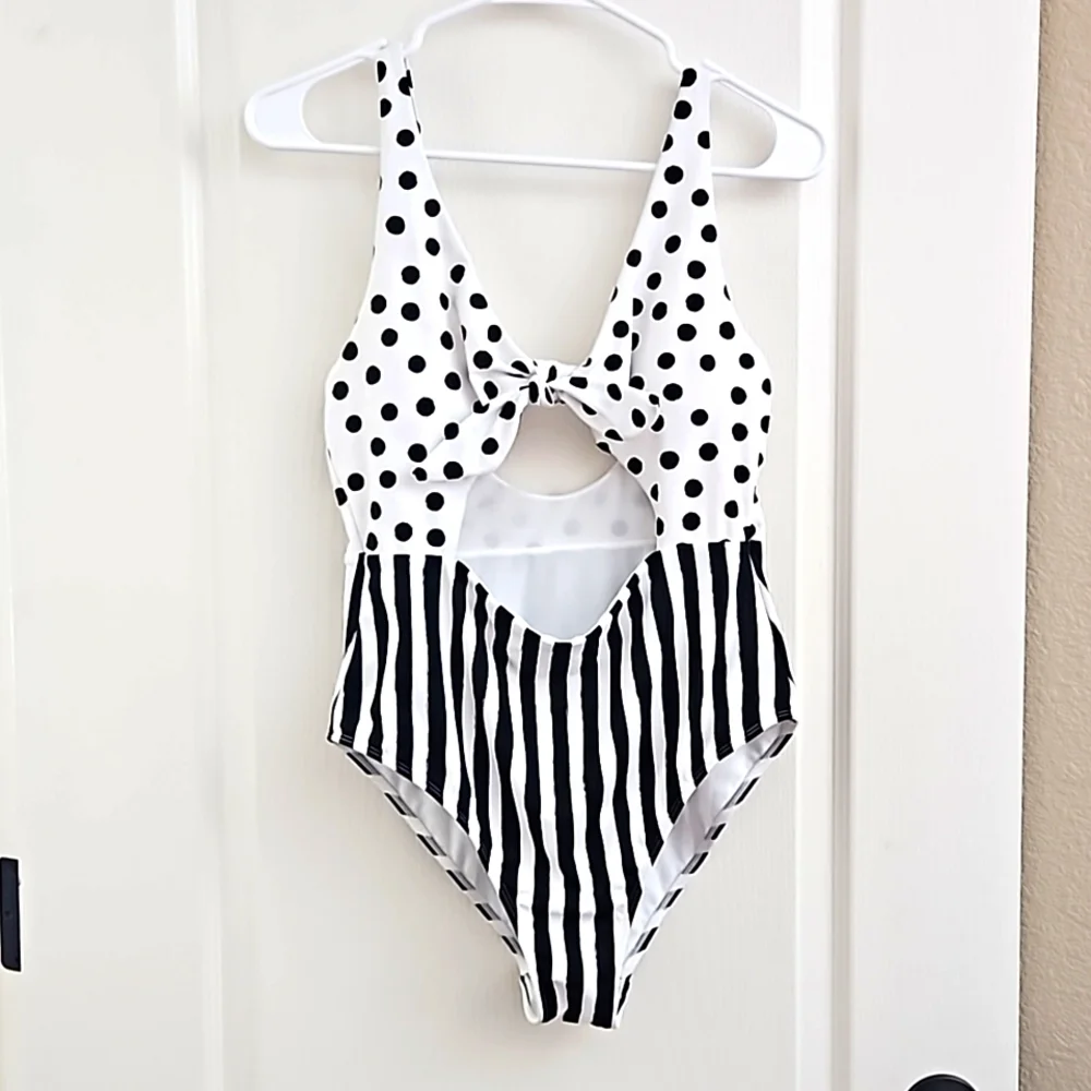 polkadot and striped no boundaries bathing suit size L (11-13). never worn without tags.