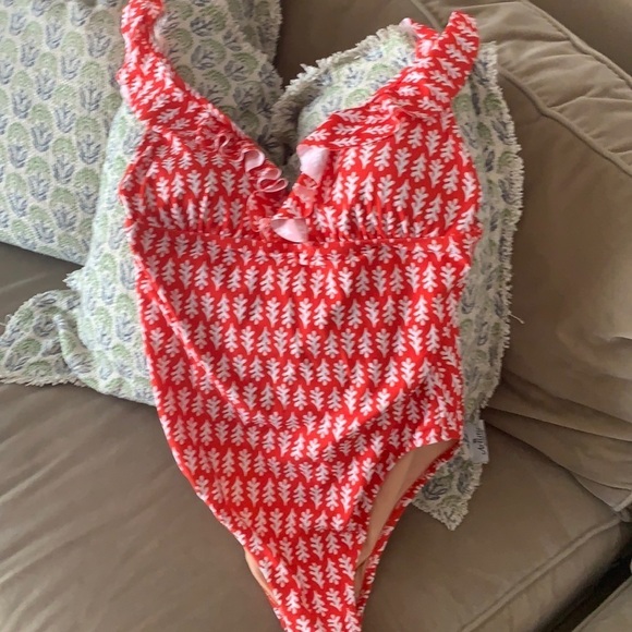 J Crew printed ruffle bathing suit . NWOT