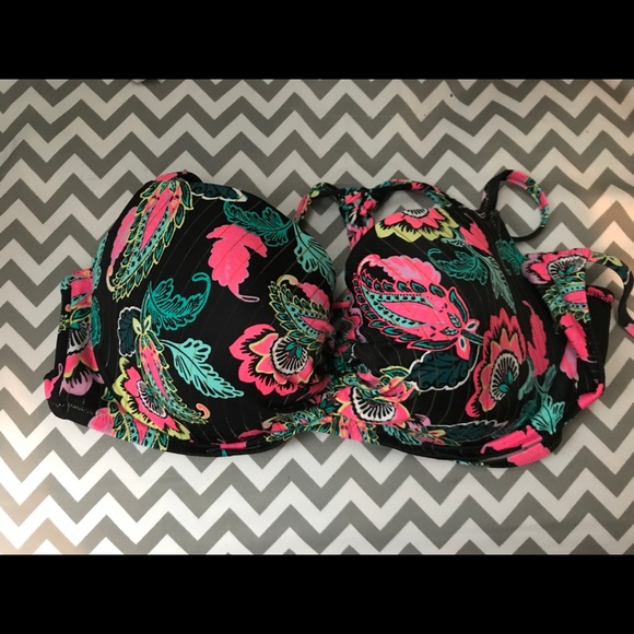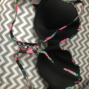 Super cute and comfortable bathing suit top! Worn twice at the end of last summer, lost weight and it no longer fits. Has underwire but no push-up. Enough padding to cover the necessary. Back design is pretty!
