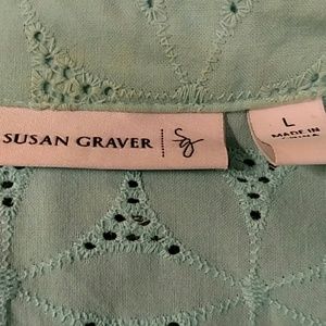 Tunic length sweet top. Could be used many ways. Great as a bathing suit cover or wear a cami underneath ????. Only flaw is a slight discoloration on collar.