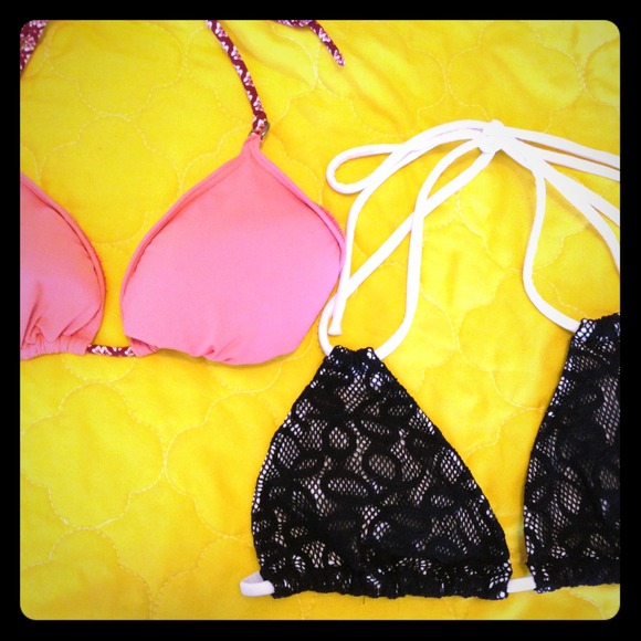 Bathing suit bundle. Black lace bathing suit is Victoria Secret, pink bathing suit is Hollister. There are no bottoms.