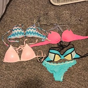 All padded bathing suit tops and a cheeky bottom to match let me know which top you'd like and we can talk prices !