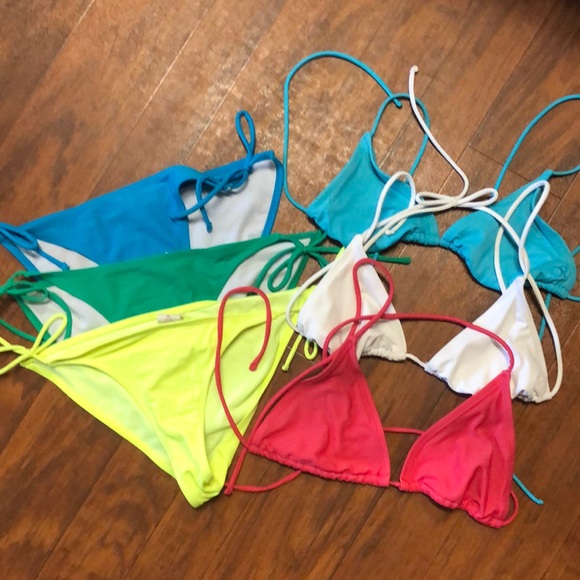 3 Tops all large. 3 Bottoms. Neon yellow is a medium other two are large. Great to mix and match. Lightly loved.