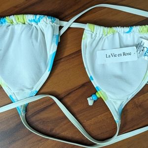 Only the white green and blue bikini top has a tag still