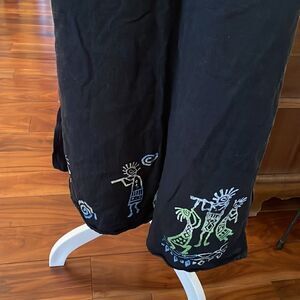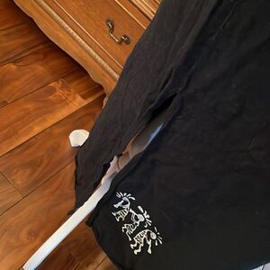 Black Sleeveless Organic Cotton. No size or brand markings. Fun design on bottom hem in back. Armpit to armpit 20.5”, length 42.5”