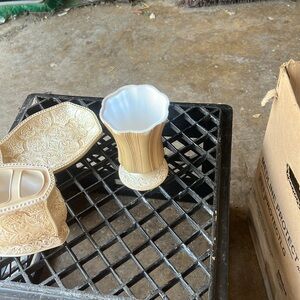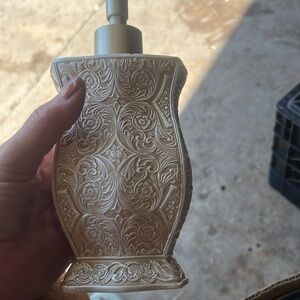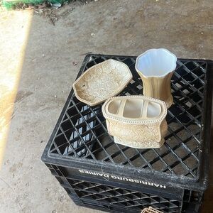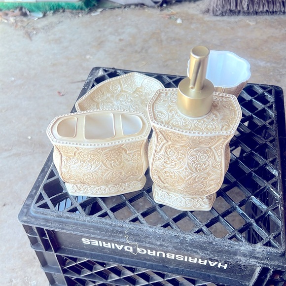 Soap dish/toothbrush holder//glass and soap dispenser Never used Resin Goes with any colors