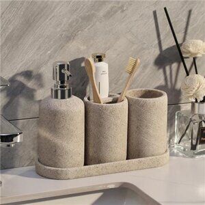 Bathroom Accessories Set 4 Pieces Soap Dispenser Toothbrush Holder Vanity Tray