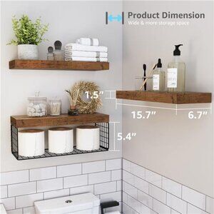 🧿Ample Depth: 6.7"D x 15.7"W x 1.5"H. 6.7" depth suitable for books, basket or bath towels. 15.7" width metal basket can hold 4 toilet paper rolls