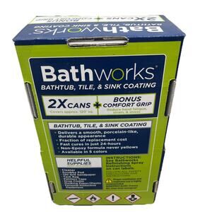 The Bathworks Bathtub Refinishing Kit includes 2 spray cans of white refinishing spray, covering an area of approximately 120 square feet. This product, from the brand BATHWORKS, allows for easy application with its spray method, making it a convenient solution for rejuvenating your bathtub. The kit provides everything needed to quickly and effectively update the appearance of your bathtub, providing a professional finish with ease. Thank you for shopping with Integrity Sales. L.
