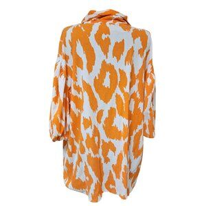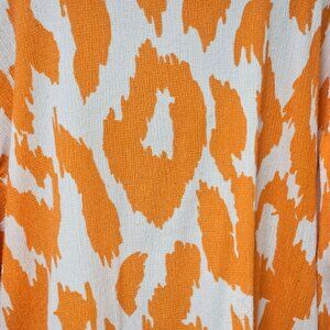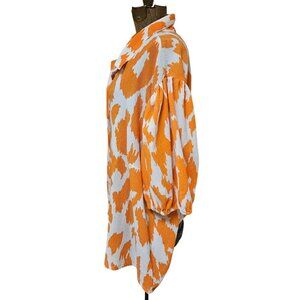 Batia New York Top Womens Size 3XL Orange White Button Up Blouse Balloon Sleeve