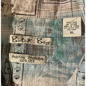 Batik Bay 100% Silk Button Up Hawaiian Shirt Size XL Men’s Blue Short Sleeve
