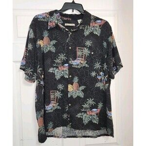 Batik Bay Hawaiian Shirt Mens 2XL Black Palm Trees Drinks Pineapple Classic Cars