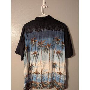 Batik Bay Hawaiian Shirt Men's Medium Rayon Palm Tree Ocean Sunset Aloha Camp
