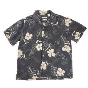 Batik Bay Men's 100% Silk Black Floral Hawaiian Shirt Large