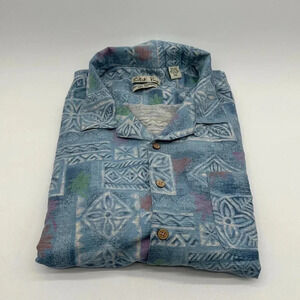 Batik Bay Shirt Mens 2XL Hawaiian Island Beach Tropical Button Up Blue 100%silk